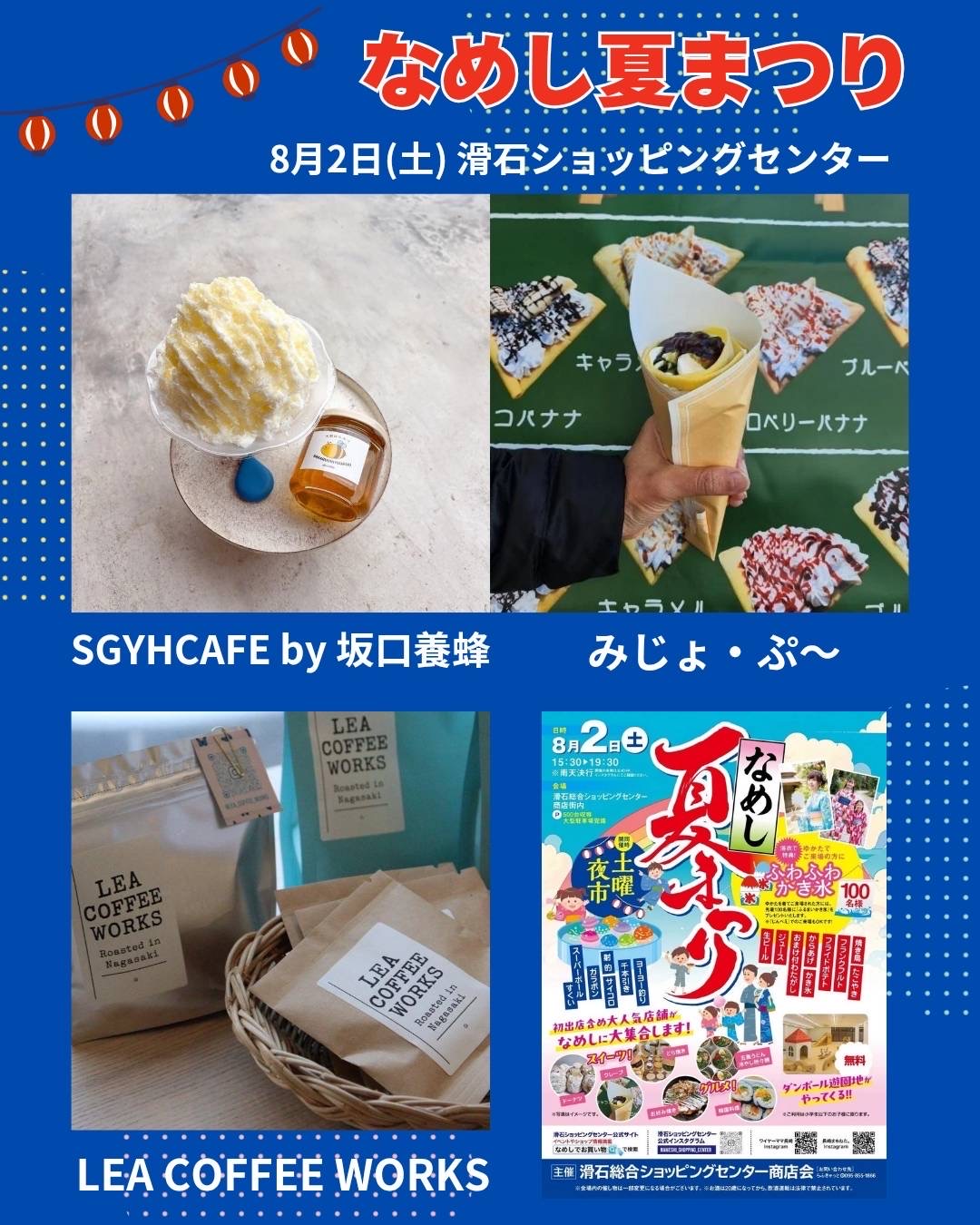 8月2日(土)なめし夏まつり 出店店舗のお知らせ