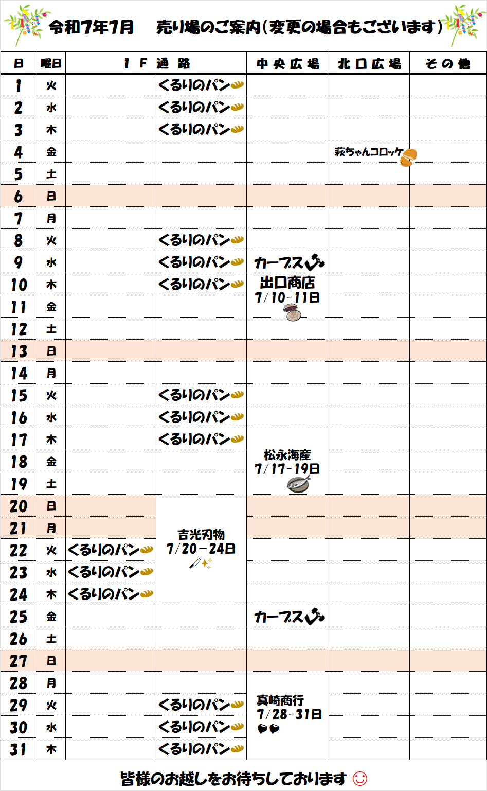 7月 売り場のご案内