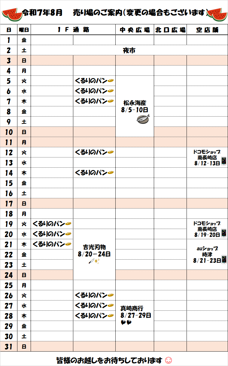 8月 売り場のご案内