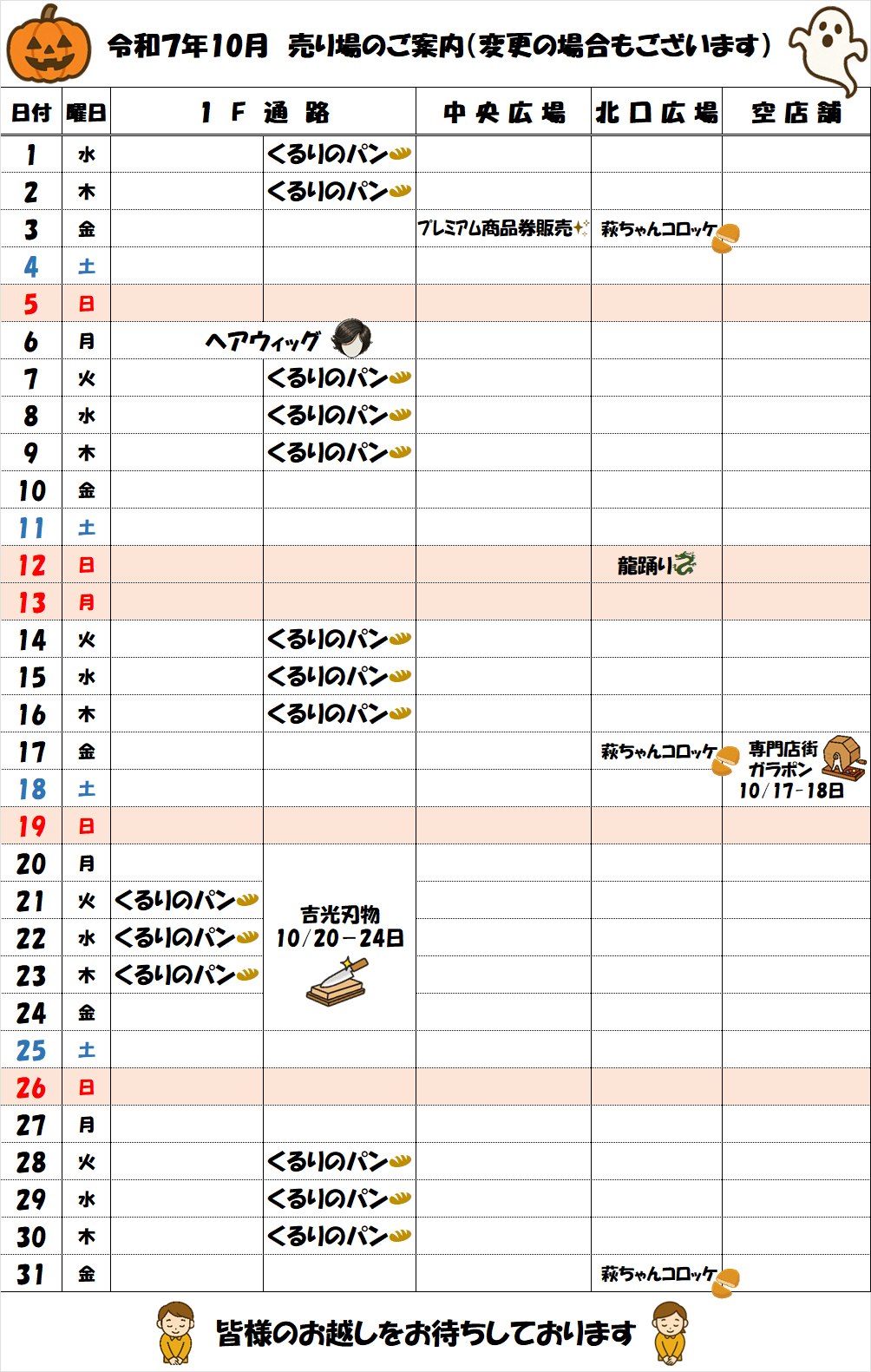 10月 売り場のご案内